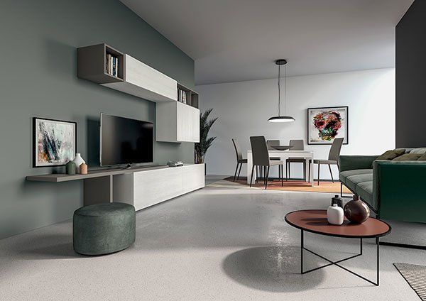 Il moderno non è mai fuori moda, ed è sicuramente lo stile più versatile, composto da poltrona e divano imbottiti, una parete attrezzata e magari una libreria.